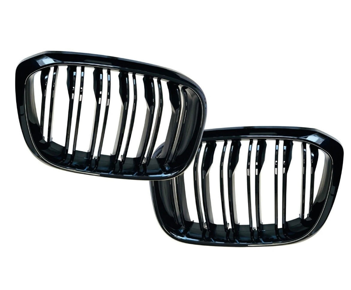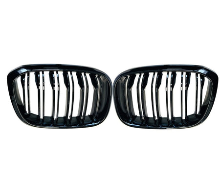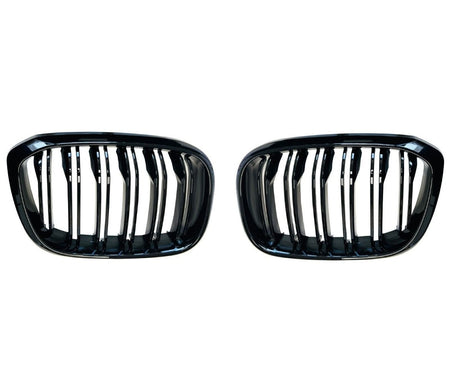 One Pair Gloss Black Dual Line Front Kidney Grilles for BMW X3 G01 & X4 G02 (2018–2022)